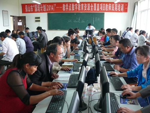 | Ø 薄改计划为农村配置多媒体远程教学设备 保山实施薄改计划,配置多媒体远程教学设备,大幅度提高远程教育资源利用效益。为农村义务教育薄弱学校每个班级配置一套多媒体远程教学设备,主要包括电子白板、多媒体展示台等较为高端的远程教学设备,满足教师运用信息化手段教学的需要,以信息化手段为核心,推进教育均等化。 根据《云南省电化教育馆关于2012年云南省农村义务教育薄弱学校改造计划——多媒体远程教学设备项目人员培训的通知》(滇电教〔2012〕49号)的要求和保山市的实际情况,保山市教育局于2014年7月7日—15日分别在保山和腾冲举办了三期项目人员培训班。对全市5县(区)109所项目学校校长、骨干技术人员和市县(区)电教、教研部门技术人员共计240人进行了培训。 通过培训,使参加培训的人员在项目建设与管理、多媒体技术理论和应用方法、多媒体教育资源开发与利用、多媒体教学与教学改革等方面有了新的认识和提高,初步掌握了电子白板的使用和维护技术。对项目学校今后在设备的管理和使用、充分发挥项目设备的使用效益、充分利用优质教育资源开展教学活动等方面起到了指导作用。  图1. 电子白板的使用培训  图2. 设备安装的培训 施甸县太平镇青龙山小学(教学点),在远程教育设备未装备前,由于学校教师构成复杂(有代课教师、年龄偏大等),致使音乐、美术学科未开设,但远程教育设备装备后,这两门学科开设起且学生的学习积极性也得到了较大的提高。 Ø 教学点数字教育资源全覆盖项目 2014年8月20日-25日,我市在保山学院举办了“国培计划(2014)”——教学点数字教育资源全覆盖项目教师短期培训班,对全市51所项目校的教师、项目校所在乡镇的中心小学和村完小一线教师、市县区电教人员共140多人进行了培训。 此次培训邀请了云师大信息学院副院长刘敏昆教授,聘请了市、县具有丰富实践经验的电教技术人员和一线教师授课,采取专家讲授、教师说课,学员操作和交流相结合的方式,完成了信息技术基本知识和数字教育资源的应用两大模块六个部分(共计40个学时)的培训任务。在为期5天的培训中还组织了计算机实践操作考核和书面考核,并给培训合格学员颁发了证书。  图3. 数字教育资源全覆盖项目培训现场 通过培训,使参训教师掌握了计算机和办公软件的基本操作,提升了实践操作技能和应用数字教育资源进行教育教学的能力。 腾冲县腾越镇芹菜塘小学(教学点)利用“教学点数字教育资源全覆盖”项目资源进行教学,提高了全体教师的教育教学水平,全面开齐课程,使边远山区的孩子享受到了教育公平。 |